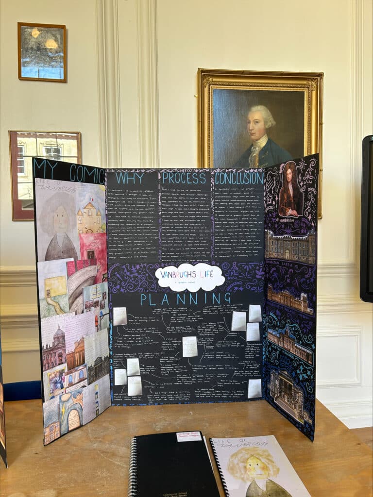 Lower Sixth Art pupils welcomed oral historian Cathy Courtney to discuss their ongoing research into Vanbrugh’s life, architecture, and cultural legacy. Her visit marked a significant milestone in a term-long project that has inspired pupils to explore a wide range of themes connected to one of Britain’s most distinctive architects.