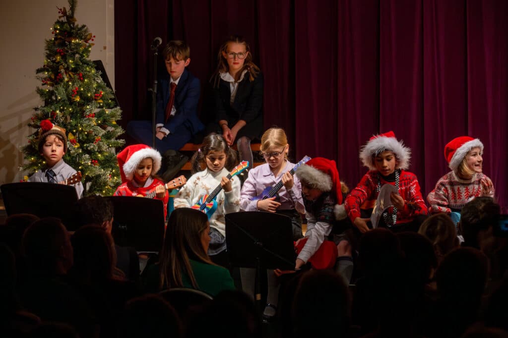 Year 6 Recorder Ensemble offered two contrasting pieces, Silent Night and Dance, before the Ukulele Group performed a lively version of Riptide. The Brass Ensemble brought a wintery mood with Midwinter Blues (Holst/arr. Kingston), while the String Ensemble lifted spirits with a bright performance of Deck the Halls.