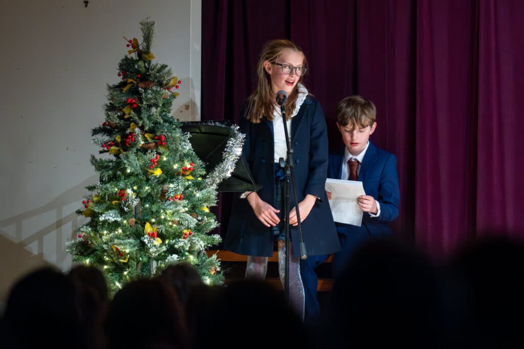 The Junior Choir impressed with Tightrope and Silent Night, both sung with clarity and emotion, before the Cygnet Sinfonietta delighted the audience with a pantomime retelling of Jack and the Beanstalk, featuring pupils Emmy (Narrator), Otto (Jack), Celia (Jack’s mum) and Rosie (Elf) in lead roles.