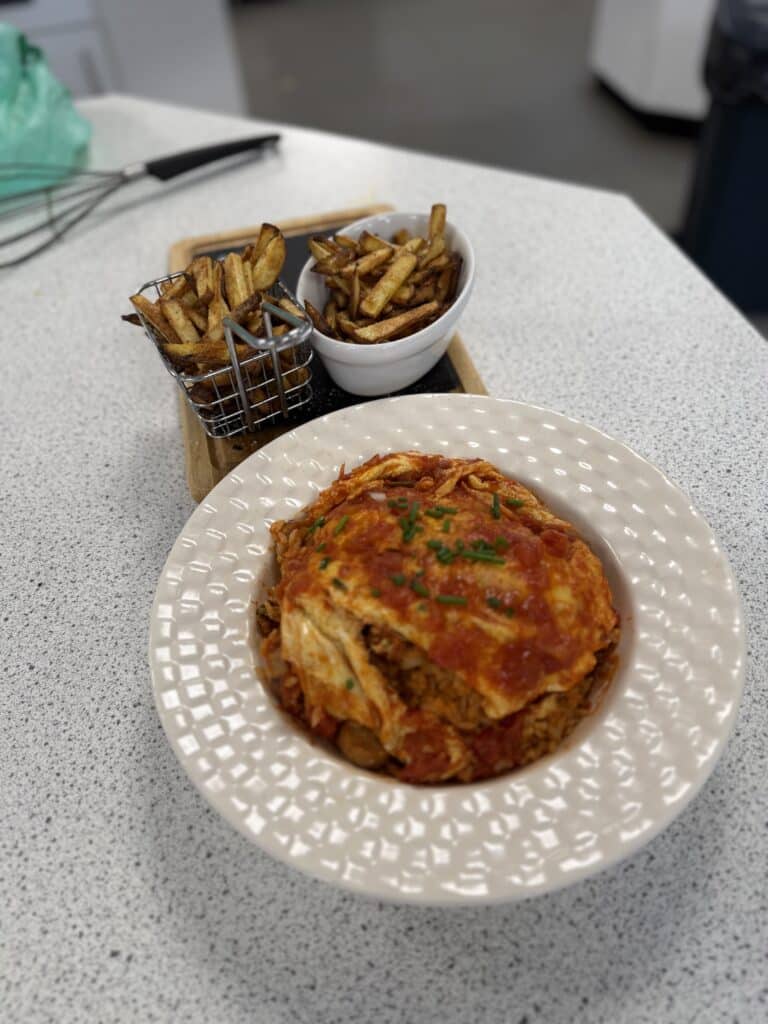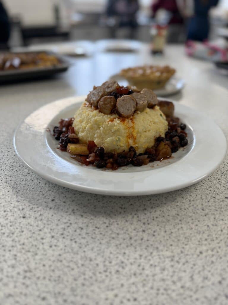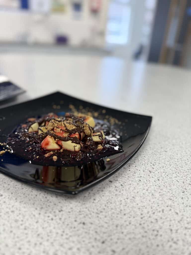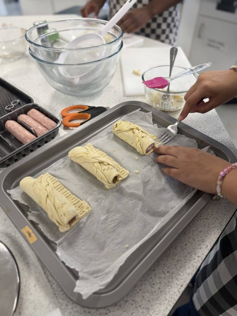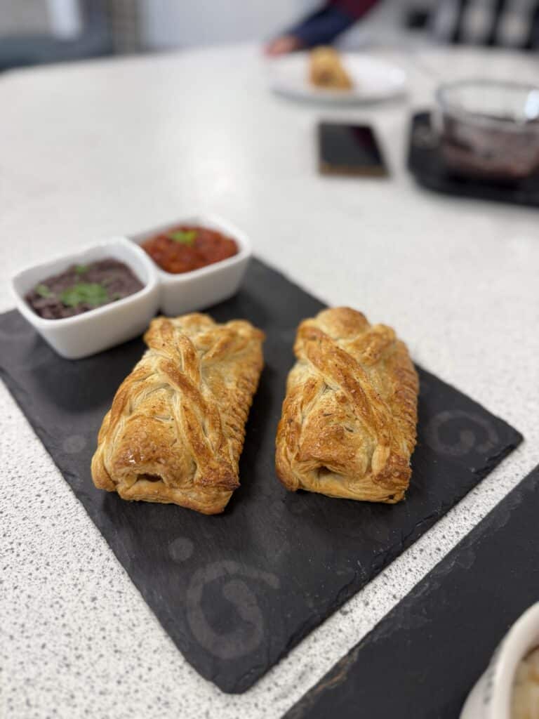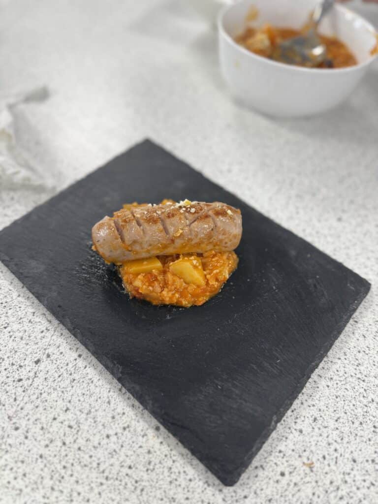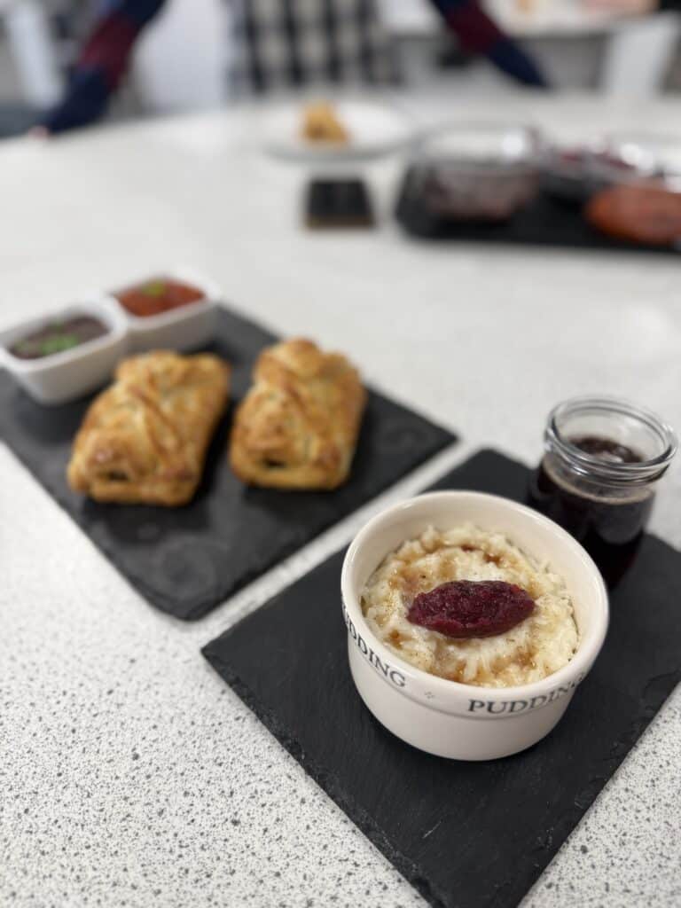 The overall winning team created sausage rolls using their additional ingredient, puff pastry and served them with a salsa and a savoury black bean dip. For dessert, they made a German style rice pudding with a berry compote.