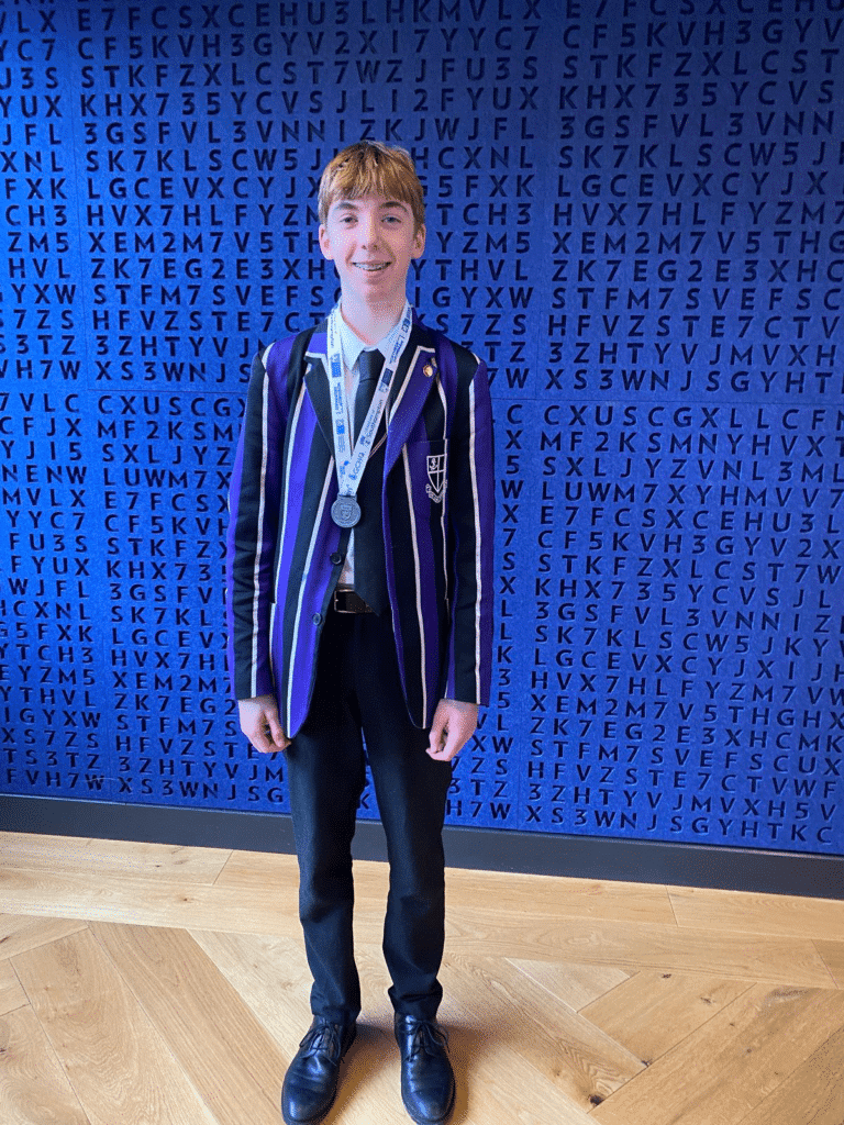 Having completed the National Cipher Challenge last term, and as one of the competitors achieving 100%, Lucas R. was invited to attend National Cipher Challenge Prize Winners event at Bletchley Park. He was awarded the Silver Prize and presented with a silver medal in recognition of his excellent performance in the competition.