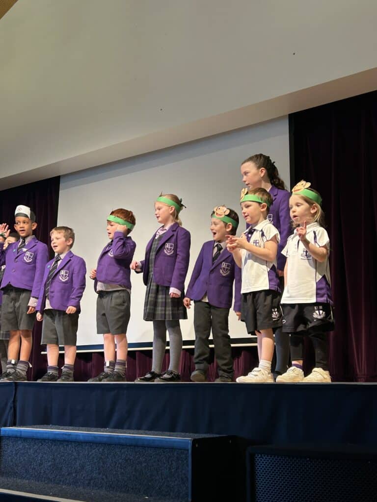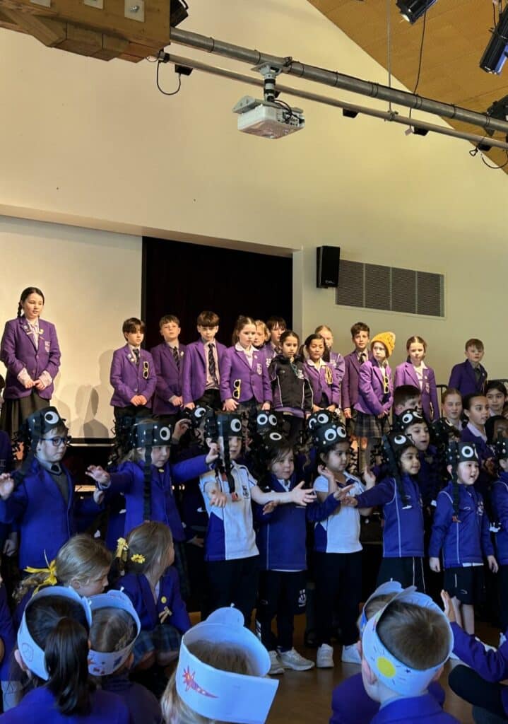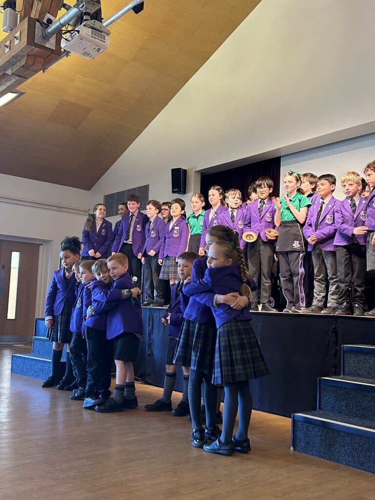 Meanwhile, the youngest pupils in Reception and Year 1 delighted the audience with lively nursery rhyme performances. They were brilliantly supported by their Year 6 House Captains, who helped guide and encourage them on stage, creating a wonderful example of collaboration across the year groups.