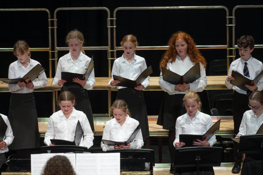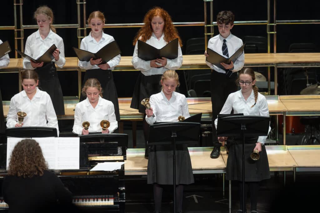 The Clarinet Ensemble’s performance of Mozart’s Divertimento No. 1, with beautiful clarity in the classical textures, followed, along with Brass Groups bright arrangement of two movements from Aladdin, while the Junior Choir charmed the large audience with two songs – the first, Randy Newman’s touching When she loved me from Toy Story 2 and a rendition of Silver Bells, complete with handbells, that tugged at all the heart strings.