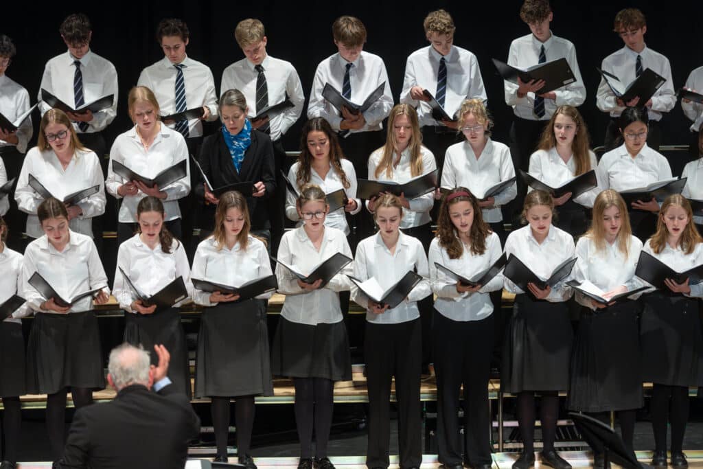 In the second half, the School Choir presented classics of the repertoire in the form of two motets by Anton Bruckner – Os justi and Locus iste – along with Brahms’ sumptuous Geistliches Lied, which was accompanied by a string sextet of students and organ.  The counterpoint of the strings, intertwined with the choral lines, drew a performance of great power and left the audience visibly moved.