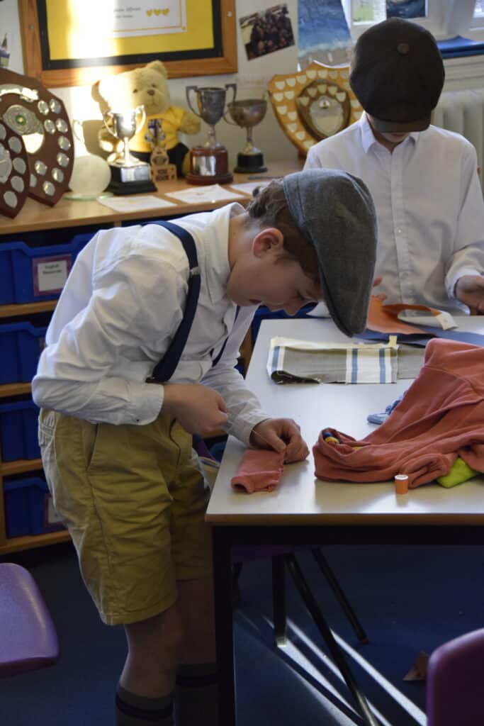 Pupils tried their hand at ‘Make Do and Mend’, sewing recycled fabrics into something new while learning about wartime rationing.